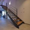 Treppe: beschichtete Stahltreppe, anthrazit, Trittstufen = Holz