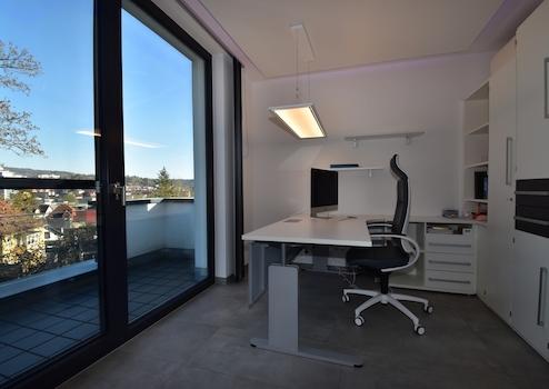 Flur, Büro, Bad, Abstellraum, Schlafzimmer mit Ankleide, Kinderzimmer, zwei Balkone