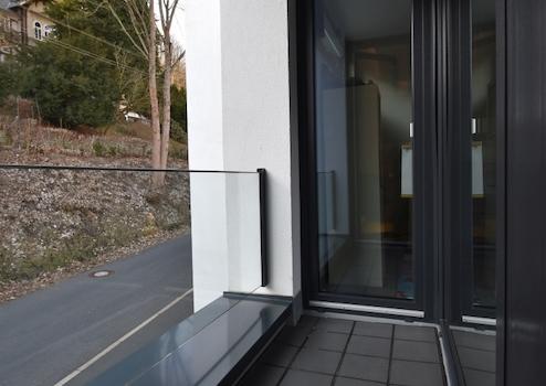 Balkone: Stahlbetonkonstruktion mit satinierten Glas