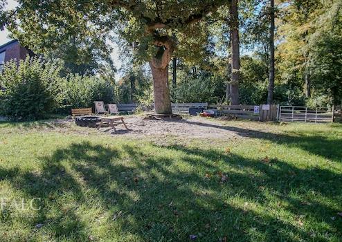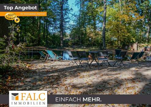 Das 13.000 m² große Grundstück mit Parkanlage und altem Baumbestand bietet viel Platz für den riesigen Garten, zum Entspannen in lauschigen Ecken oder unter Bäumen.