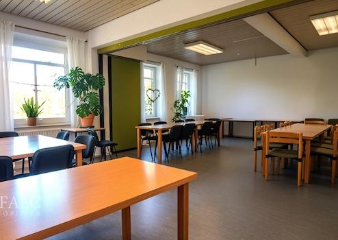 Neben der eigenen Wohnung stehen den Eigentümern noch verschiedene Gemeinschaftsräume zur Verfügung. Es gehören eine große, voll ausgestattete Gemeinschaftsküche, ein Kaminzimmer mit Bibliothek (der Kaminofen ist außer Funktion), ein teilbarer Mehrzweckraum sowie ein Gemeinschaftswohnzimmer und ein Co-Working-Space im Haupthaus sowie ein abschließbarer Fahrradraum und ein Atelier im Gartenhaus dazu.