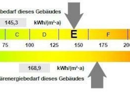 Der Energieausweis zeigt mit einem Endenergiewert von 145,30 kWh/(m²*a) die Kennziffer E.
