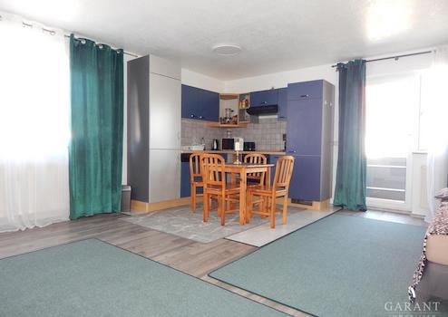 Die Küche ist im Wohn-/Esszimmer integriert.
