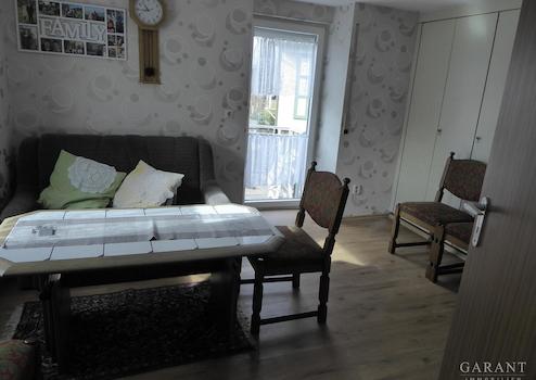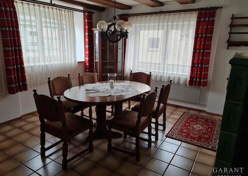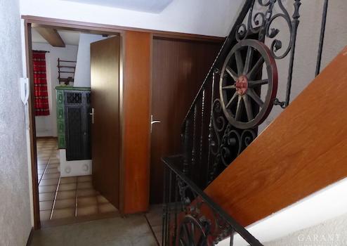 Wie es früher ebenso war, beherbergt das Erdgeschoss neben dem Flur zum Obergeschoss noch den alten Stall, den Heizraum mit direktem Zugang zur imposanten Scheune mit reichlich Platz, der Garage und Werkstatt. Auf den beliebten Gewölbekeller müssen Sie hier auch nicht verzichten, der optimale Aufbewahrungsort für Äpfel, Gemüse, Most, etc.. Hier wohnt man in den oberen Etagen. Gemütlich ist die kleine Stube mit Zugang zum Balkon, wo Sie die Mittagssonne und den Sonnenuntergang genießen können. Nebenan das Esszimmer mit Kachelofen und die Küche, mit genügend Platz für eine Sitzecke.