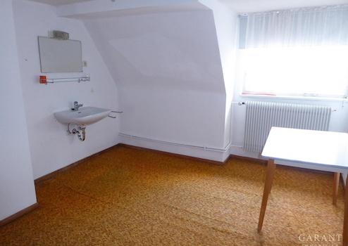 Klein aber fein ist das frisch renovierte Duschbad. Das Gäste-WC und ein Schlafzimmer runden diese Etage ab. Weitere Schlafräume und ein WC befinden sich im Dachgeschoss, welches aufgrund der Gauben nur in einem Zimmer die Dachschräge hat. Weiteres Ausbaupotenzial bietet Ihnen der geräumige Dachstuhl.