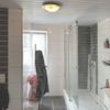 Im Obergeschoss befindet sich ebenfalls eine 2,5-Zimmerwohnung. Über den Flur sind das Schlaf- und das helle Wohnzimmer sowie der Essbereich mit offener Küche zu erreichen. Vom Esszimmer besteht Zugang zum Süd-Balkon. In der Küche befindet sich eine moderne Einbauküche. Das modern geflieste Bad ist mit einer großen Dusche, großem Waschbecken mit Unterschrank und WC ausgestattet. Weiter sind ein Abstellraum und ein Schwedenofen vorhanden.