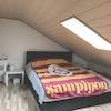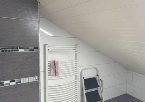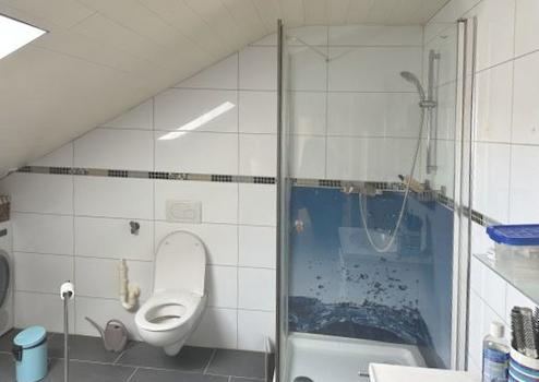 Im Dachgeschoss befindet sich eine 2-Zimmerwohnung. Vom Flur aus sind alle Räume zu erreichen. Im großzügigen Wohn-/Ess-/Koch-Bereich befinden sich Deckenspots und bodentiefe Fenster mit Französischen Balkonen. Eine sehr große Dachgaube bietet einen herrlichen Ausblick. Das modern deckenhoch hell geflieste Bad ist mit Dusche, Waschbecken, WC, Handtuchheizkörper und Waschmaschinenanschluss ausgestattet. Das Dachgeschoss wird aktuell durch die Wohnung im Obergeschoss begangen.