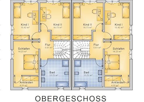 Die Doppelhäuser sind noch nicht erstellt und werden ähnlich den Einfamilienhäusern ausgestattet.