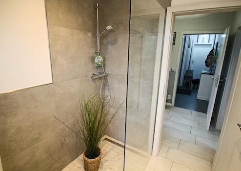 Eingangsbereich, zwei Tageslichtbädern mit Dusche, Wohnzimmer, Schlafzimmer, 2 weitere Zimmer, Küche mit Einbauküche und Zugang zur Terrasse, Flur, Abstellraum