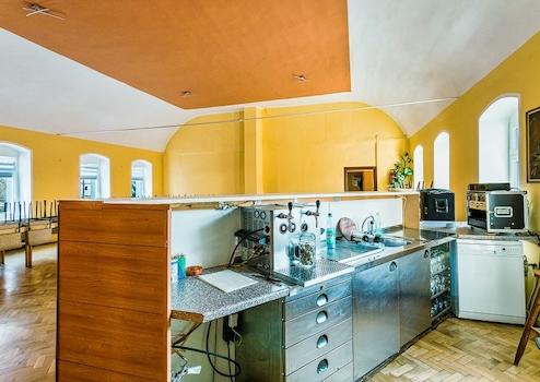 Für das gemeinschaftliche Miteinander stehen im OG ca. 120 m² Saal und drei weitere Nebenräume zur Verfügung. Im EG befinden sich eine Gemeinschaftsküche, separate Toiletten und zwei kleinere Räume.