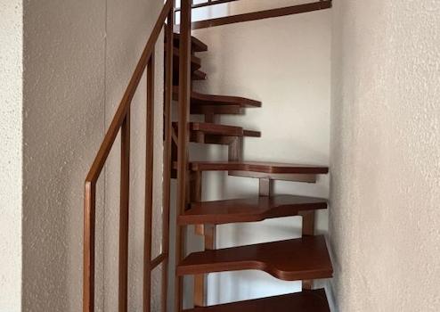 Eine Wendeltreppe im Flur führt ins Atelier. Hier befindet sich ein ebenfalls mit Laminatboden ausgelegter großer Raum, der vielseitig nutzbar ist. Die drei Dachflächenfenstern sorgen für ausreichende Belichtung. Es besteht die Möglichkeit den Raum zu unterteilen.