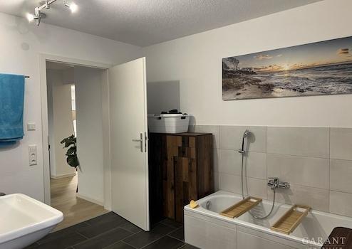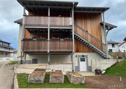 Diese 3 1/2 Zimmer-Wohnung mit ca. 111 qm überzeugt mit ihrer Großzügigkeit der Raumaufteilung. Moderne Farben und Materialien vermitteln ein angenehmes Wohnklima. Zu dieser Etage führt ein Zugang von außen über eine große, gerade verlaufende Treppe auf den großen Balkon mit sensationeller Aussicht auf die umliegenden Felder und den Hotzenwald. Von hier aus gelangen Sie direkt in die Wohnung.