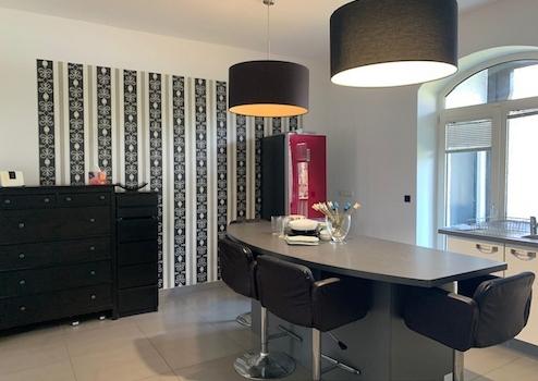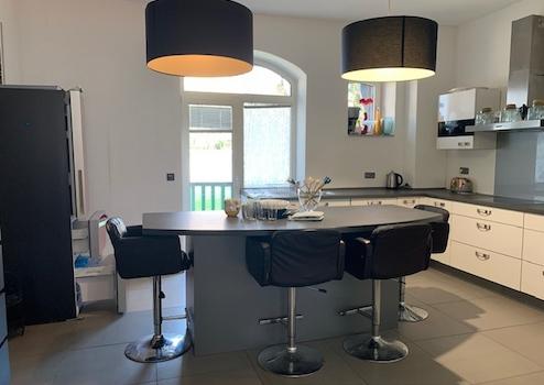 Der geräumige Wohn- und Essraum, sowie die daran anschließende, sehr gut ausgestattete Wohnküche mit Ess-Theke erzeugen ein Gefühl der Großzügigkeit und des entspannten Zusammenwohnens für die ganze Familie.