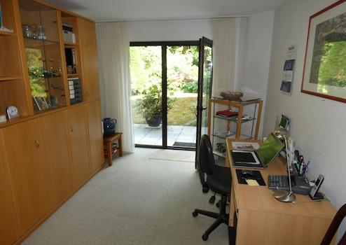 Der untere Wohnbereich ist clever aufgeteilt und bietet ein komfortables Schlafzimmer sowie ein Kinderzimmer, beide mit direktem Zugang zum Garten. Das moderne Badezimmer wurde 2019 saniert und präsentiert sich zeitgemäß. Ein großer Hauswirtschaftsraum mit einer Gasheizung aus dem Jahr 2000 und jeder Menge Stauraum sorgt für zusätzlichen Komfort. Die Kellerdiele verbindet die Räume auf praktische Weise.