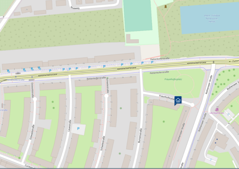 Der Fraunhoferplatz im Stadtteil Neue Neustadt/Eichenweiler befindet sich in unmittelbarer Nähe der Hauptverkehrsstraße der Pettenkofer.