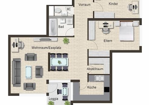 Hier erwartet Sie eine 3,5-Zi-Wohnung im 7. Stock, die Sie bequem mit dem Aufzug erreichen können.