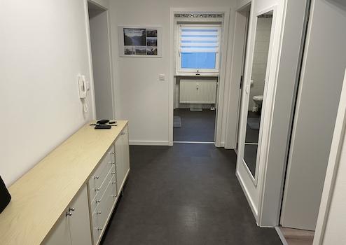 - Bodenbeläge: Vinylboden (Anthrazitgrau) im Bad und Flur (darunter befinden sich Fliesen)