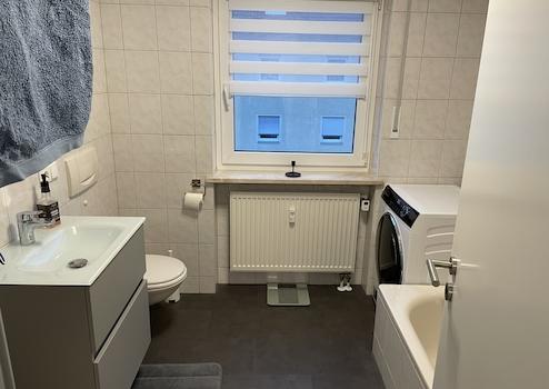 - Badezimmer mit Dusche und Wanne, Waschmaschinenanschluss vorhanden