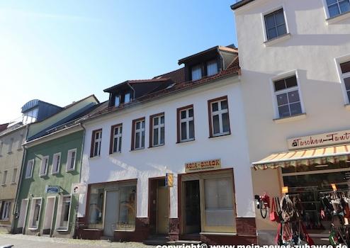 Wir bieten Ihnen in einer Einkaufsstraße von Senftenberg ein Grundstück von ca. 520 m², bebaut mit einem Wohn- und Geschäftshaus, einem Nebengebäude und einem Carport.
