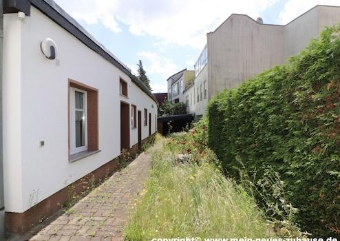 Auf dem Hof befinden sich das Nebengebäude und der Carport. Das Nebengebäude ist am Wohn- und Geschäftshaus angebaut. 2 Räume des Anbaues wurden für das Ladengeschäft ausgebaut. Die anderen Räume werden zu Abstellzwecken genutzt.