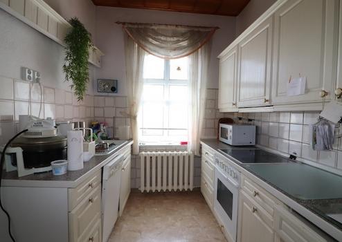 Das Wohn- und Geschäftshaus wurde ca. 1885 in massiver Bauweis mit Teilkeller errichtet. Im Erdgeschoss befinden sich ein Friseursalon und ein Ladengeschäft, im Ober- und Dachgeschoss eine Wohnung. Der Friseursalon hat mit 3 Frisierräumen und einem Büro eine Größe von ca. 77 m², das Ladengeschäft hat mit einem Verkaufsraum eine Größe von ca. 24 m². die Wohnung hat mit 7 Zimmern, Küche, Bad, Abstellräumen und Fluren eine Größe von ca. 216 m².