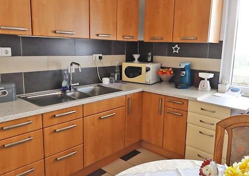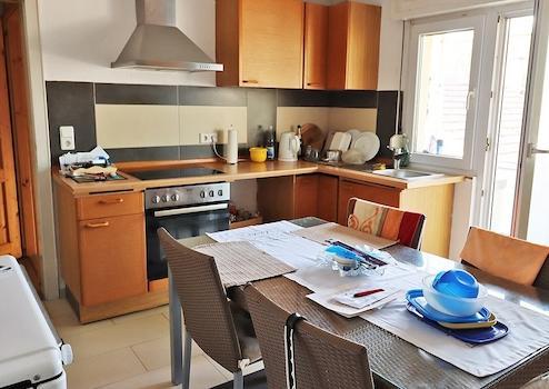 Im Obergeschoss befinden sich vier Zimmer zur individuellen Nutzung, ein zweites Bad sowie eine Küche, ebenfalls mit angrenzendem Abstellraum. Die Küche bietet Zugang auf den Balkon.