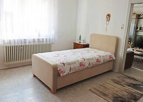 Das Haus teilt sich im Erdgeschoss auf in Wohn- und Schlafzimmer, Küche mit angrenzendem Abstellraum und Bad. Zum Eingangsbereich gelangen Sie durch die Hofeinfahrt.