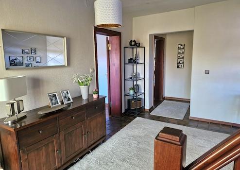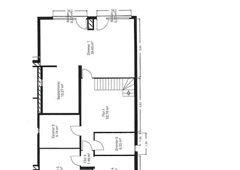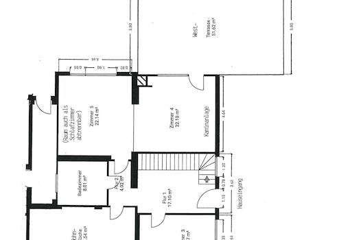 Soweit dieser Hausbereich im DG nicht ganz oder teilweise der Hauptwohnung im EG nutzungsmäßig zugedacht werden sollte, bietet sich mit wenigen Umbauten sowohl eine eigenständige Wohneinheit mit 4½ Zimmern plus Küche (Anschlüsse vorhanden bzw. leicht herstellbar) an oder sogar die Herstellung zweier eigenständiger kleiner Wohnungen. Gern beraten wir Sie bei einem Planungsgespräch; nicht zu vergessen ist bei weiterem Raumbedarf die Möglichkeit der Reserve-Spitzboden.