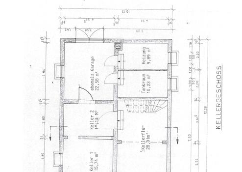Der Teilkeller des Gebäudes bietet 3 gut nutzbare Räume mit Überhöhe (z.T. beheizt) mit etwa 50 m² Nutzfläche sowie einen etwa 43 m² großen Bereich mit Heizungstechnik aus 2004, Tankraum und von außen begehbarem Vorraum, der den Zugang zum Heizungsbereich auch vom „Wohngebäude 2“ aus ermöglicht, das von der Heizungsanlage ebenfalls mit Wärme und Warmwasser versorgt wird.