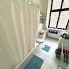 Das innenliegende Wannenbad ist modern ausgestattet und verfügt über einen praktischen Waschmaschinenanschluss.