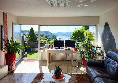 Vom lichtdurchfluteten Wohn- und Essbereich, Arbeits- und Schlafzimmer sowie von der großzügigen Sonnenterrasse aus genießen Sie ein Panorama, das vom malerischen Flusslauf bis hin zum Deutschen Eck in Koblenz reicht. Der Rhein liegt Ihnen hier zu Füßen - ein Anblick, der täglich fasziniert und den besonderen Charme dieser Immobilie ausmacht.