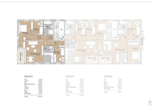 Dank der variantenreichen Grundrissgestaltung können Sie Ihre Wohnung nach eigenen Wünschen anpassen und den Wohnraum ideal auf Ihre Bedürfnisse abstimmen. In den meisten Bädern erwartet Sie eine bodengleiche Dusche und eine Badewanne, um Ihren Start in den Tag angenehm zu gestalten. Der hohe Wohnkomfort wird durch hochwertige Laminat- und Vinylböden sowie Fußbodenheizung unterstützt. In den Küchen und Bädern wurden Fliesen verlegt, während Parkettböden auf Wunsch gegen Aufpreis möglich sind.