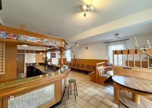 • Gemütlicher Gastraum mit Theke (ca. 120 m²) – ausbaubar zu Wohn- oder Arbeitsbereichen