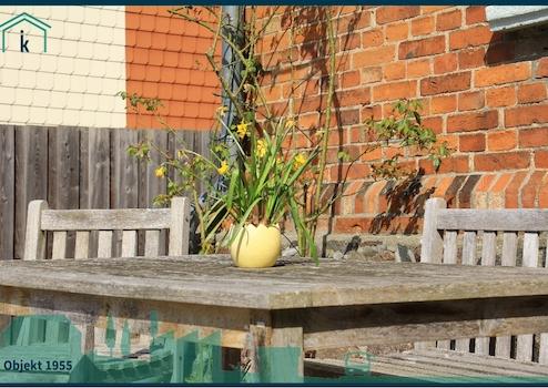 Das Objekt besteht aus Haupt- und Hinterhaus. Im Haupthaus gibt es ein Erd- und Dachgeschoss. Im Erdgeschoss befindet sich die Wohnung der Eigentümer, die nach Verkauf freigezogen wird und eine kleine Gewerbeeinheit, die auch wieder zur Wohnung umgenutzt werden kann.