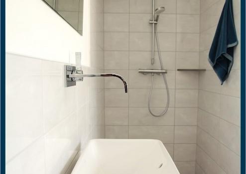 Wohnung 2: Dachgeschoss (Gästewohnung) Wohnfläche von ca. 38 m², 1 Zimmer, Küche mit Einbauküche und Bad mit Dusche