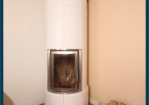 Kachelofen im Wohnzimmer der Erdgeschosswohnung aus 2012.