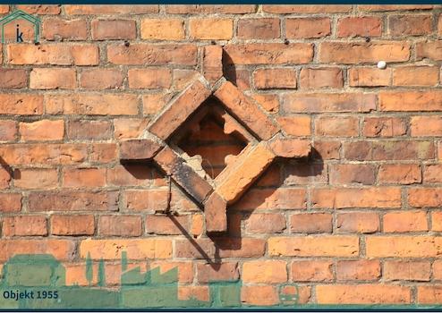 Das sanierte Wohn- und Geschäftsgebäude steht unter Denkmalschutz, als Einzeldenkmal Nr. 208 mit Backsteinfassade.