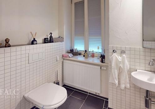Die gesamte Wohnung ist mit hochwertigem Massivholzboden ausgelegt, einschließlich der Nassräume wie WC und Badezimmer – ein Zeichen von Exklusivität und Stil.