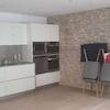 Die gesamte Wohnung ist mit massiven Eichendielen in weiß geölter Ausführung ausgestattet. Der Wohnbereich beeindruckt durch eine stilvolle Steinwand und hochwertige Sprossenfenster.