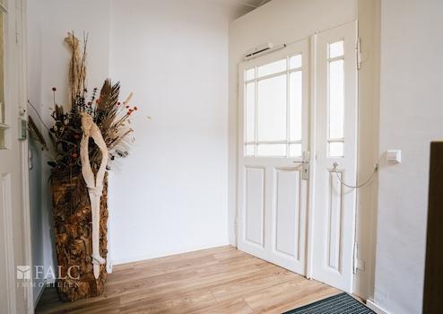 Wie im restlichen Gebäude legte man großen Wert auf die Bewahrung des historischen Charmes. So wurden weiße Holzsprossenfenster, elegante Stuckbögen und hochwertiges Echtholzparkett verbaut, um den klassischen Stil des Hauses zu erhalten.