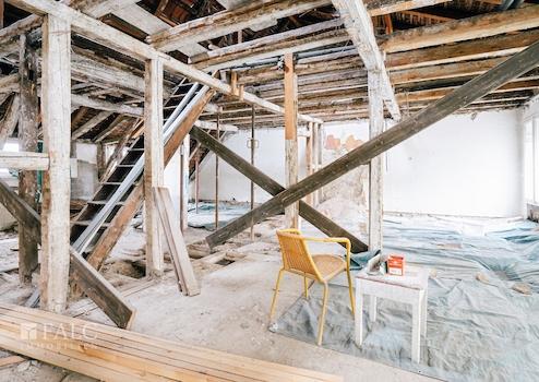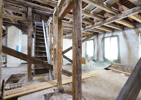 Noch ausstehend ist der Abbruch und Wiederaufbau des Daches im Vorderhaus, um dort zwei zusätzliche Maisonettewohnungen mit ca. 200 m² Wohnfläche zu schaffen.