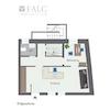 Diese Wohnung befindet sich im dritten Gebäude über den Garagen und verfügt über einen privaten Zugang, der über eine Stahltreppe zur eigenen Holzterrasse führt. Der Eingang liegt direkt neben der Terrasse. Nach dem Betreten gelangt man in den lichtdurchfluteten Wohn- und Essbereich. Von hier aus sind sowohl das Badezimmer als auch das Schlafzimmer zugänglich.