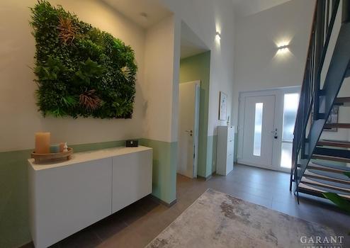 Bereits beim Betreten empfängt Sie ein großzügiger Eingangsbereich, der mit Gäste-WC und Technikraum den Ton für die Qualität und Großzügigkeit des gesamten Hauses vorgibt. Der offene Wohn- und Essbereich ist das Herzstück - lichtdurchflutet, warm, einladend. Die moderne Einbauküche lädt zu gemeinsamen Kochmomenten ein, während die bodentiefen Fenster den Blick auf den traumhaften Garten freigeben. Hier verschmelzen Innen- und Außenleben auf harmonische Weise - besonders an sonnigen Nachmittagen oder lauen Sommerabenden. Eine Fußbodenheizung sorgt dabei im gesamten Haus für wohlige Wärme.