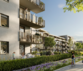 Sechs Häuser mit Energieeffizienzklasse A reihen sich mit unterschiedlichen Höhen sowie baulichen Vor- und Rücksprüngen spannungsreich aneinander. MY CHOICE Eching hat eine exponierte Lage in der Gemeinde, weshalb die optische Gestaltung besonders wichtig ist. So weist die Fassade im obersten Geschoss beispielsweise eine individuelle Kammputzstruktur aus. Zusammen mit den verglasten Loggien und den Bäumen auf den Dächern wird dieses einmalige Ensemble ein attraktiver Blickfang für alle Bewohner, Besucher und Spaziergänger.