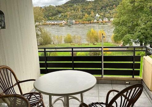 Die voll ausgestattete offene Küche ist nicht nur funktional, sondern auch ein geselliger Treffpunkt. Die Theke mit drei Barhockern lädt zu gemütlichen Gesprächen ein. Der zum Rhein gelegene Balkon bietet eine einzigartige Kulisse für entspannte Stunden.