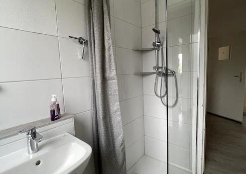 Warmwasserspeicher ausgestattet. Die Kücheneinrichtung gehört den Mietern. Linker Hand vom Bad ist ein