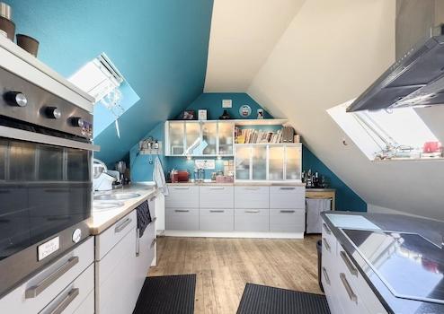 Zwei moderne Einbauküchen können nach Absprache übernommen werden, was zukünftigen Mietern oder Eigennutzern Flexibilität bietet. Zudem überzeugt der ca. 123 qm große Garten, der mit einem Gartenhäuschen ausgestattet ist und hohen Freizeitwert bietet.