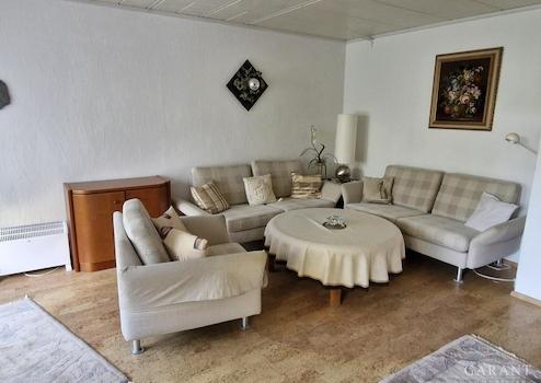 Im Erdgeschoss befinden sich Wohnzimmer mit Zugang zur Terrasse, Küche, Gäste-WC, Flur und Windfang.