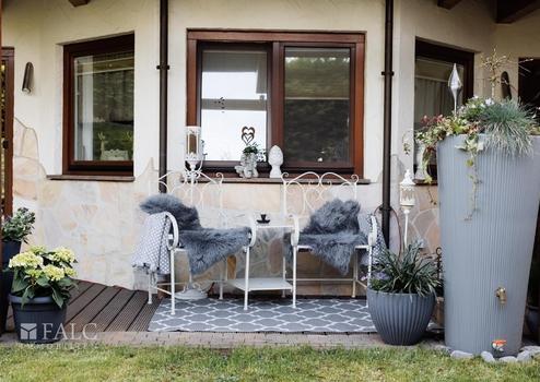 -Die großzügige, überdachte Terrasse lädt nach getaner Arbeit zum Entspannen und Grillen ein.