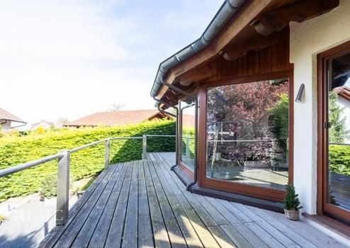 -Große Fensterfronten sorgen für lichtdurchflutete Räume und einem atemberaubenden Blick in die Ferne.